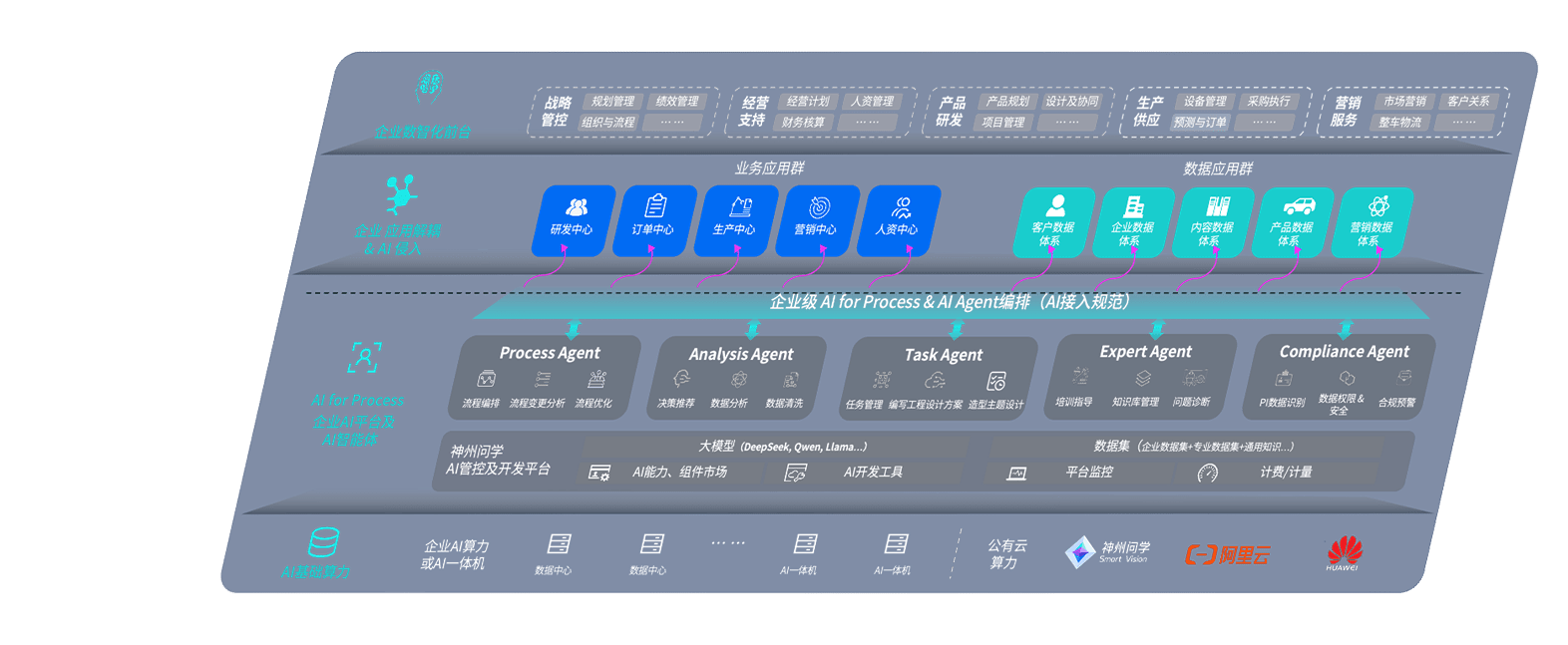 地球人问学智车解决方案是一套基于AI技术的汽车行业智能化系统,,,,覆盖从底层算力到顶层AI应用的全栈方案。。方案由算力层、、、、模型层和应用层组成:算力层,,,,方案支持多种一体机配置,,具备云端灵活部署、、多云适配以及动态优化计算资源的能力;模型层,,,,地球人问学平台版提供了企业级AI应用一站式构建与管理平台,,,支持基于后训练强化技术的汽车企业专属模型的训练、、、评测和运营;应用层,,地球人问学DeepSeek版提供包括超级员工、、、智能招采、、、、智能营销、、、、智能客服、、AI for BI等一系列解决方案,,可助力汽车行业实现数字化转型,,,让管理更智能、、、、响应更敏捷。。。。